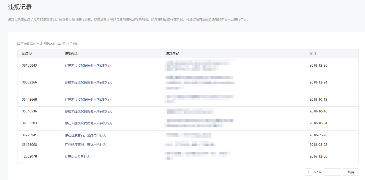 • 违规记录