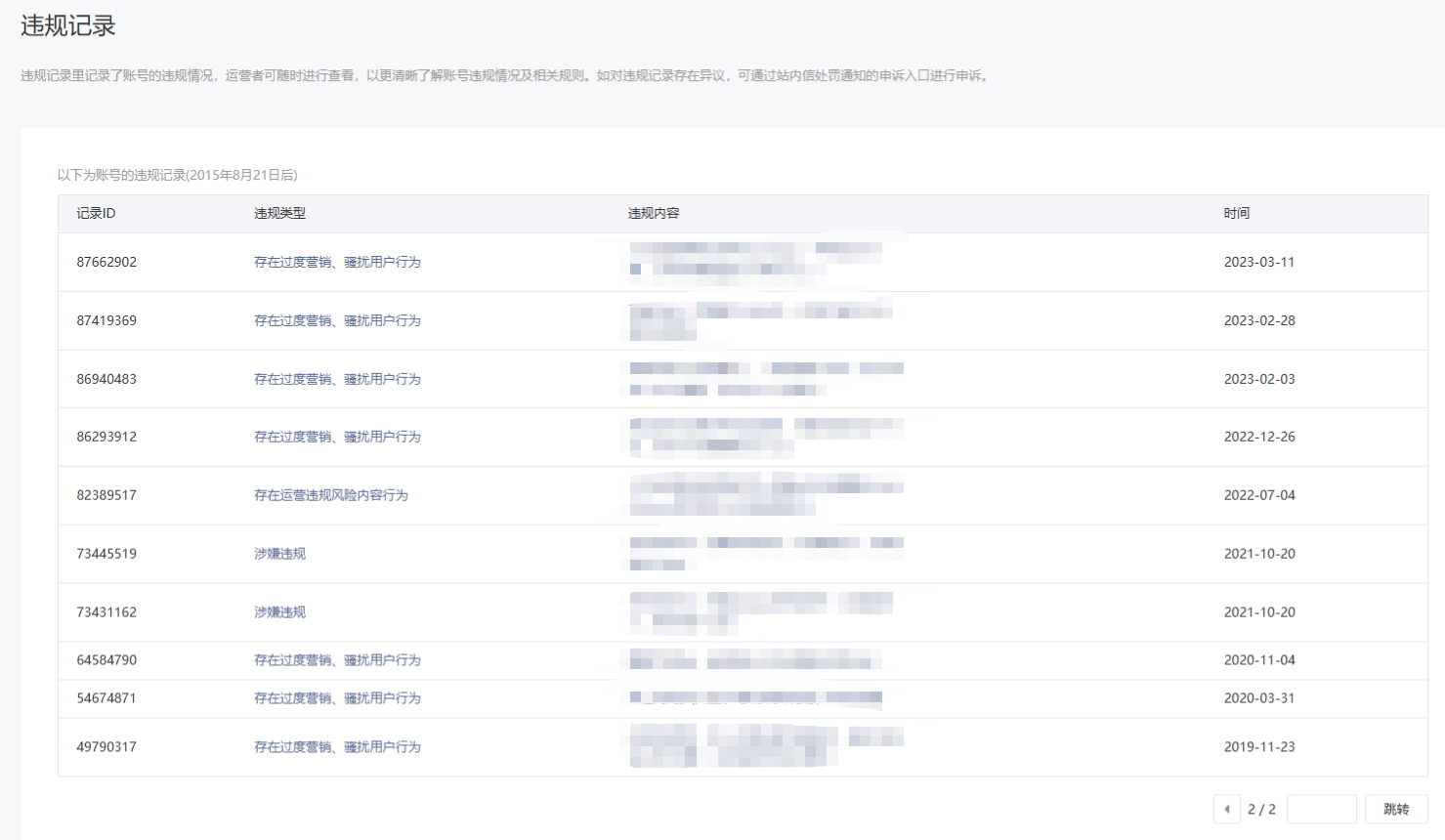 • 违规记录
