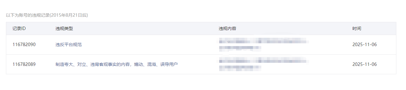 • 违规记录
