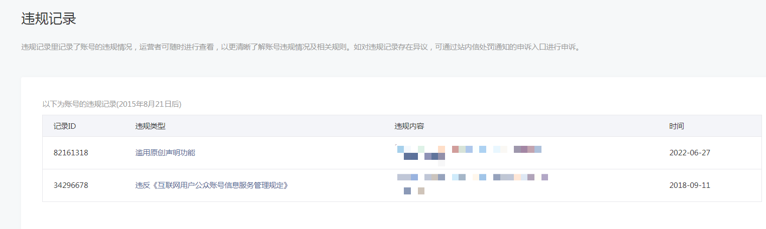 • 违规记录