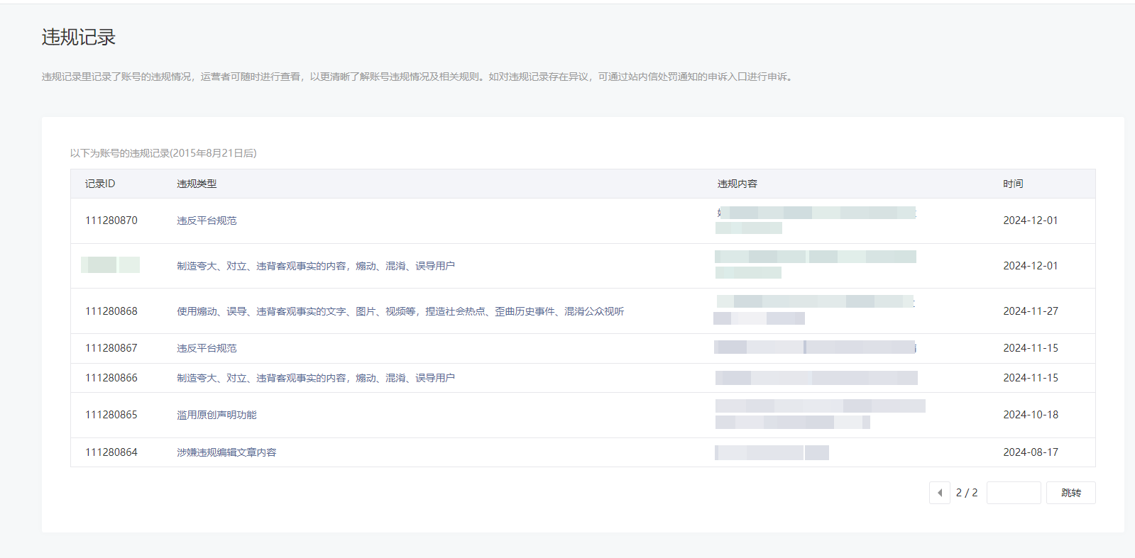 • 违规记录