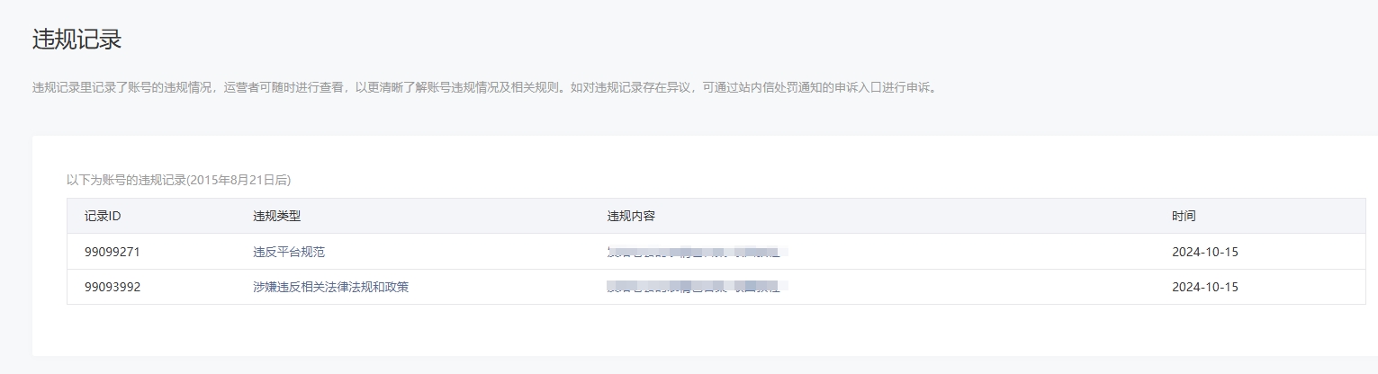 • 违规记录