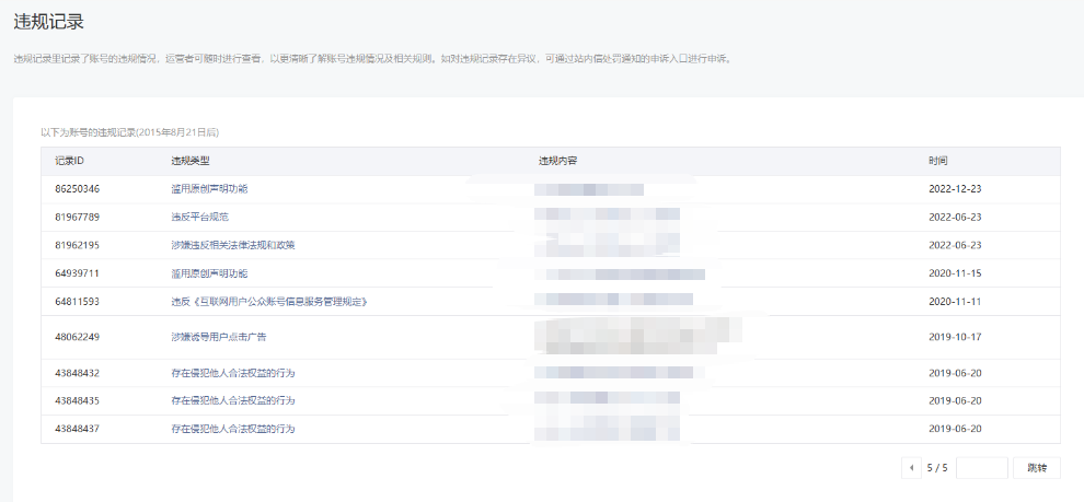 • 违规记录