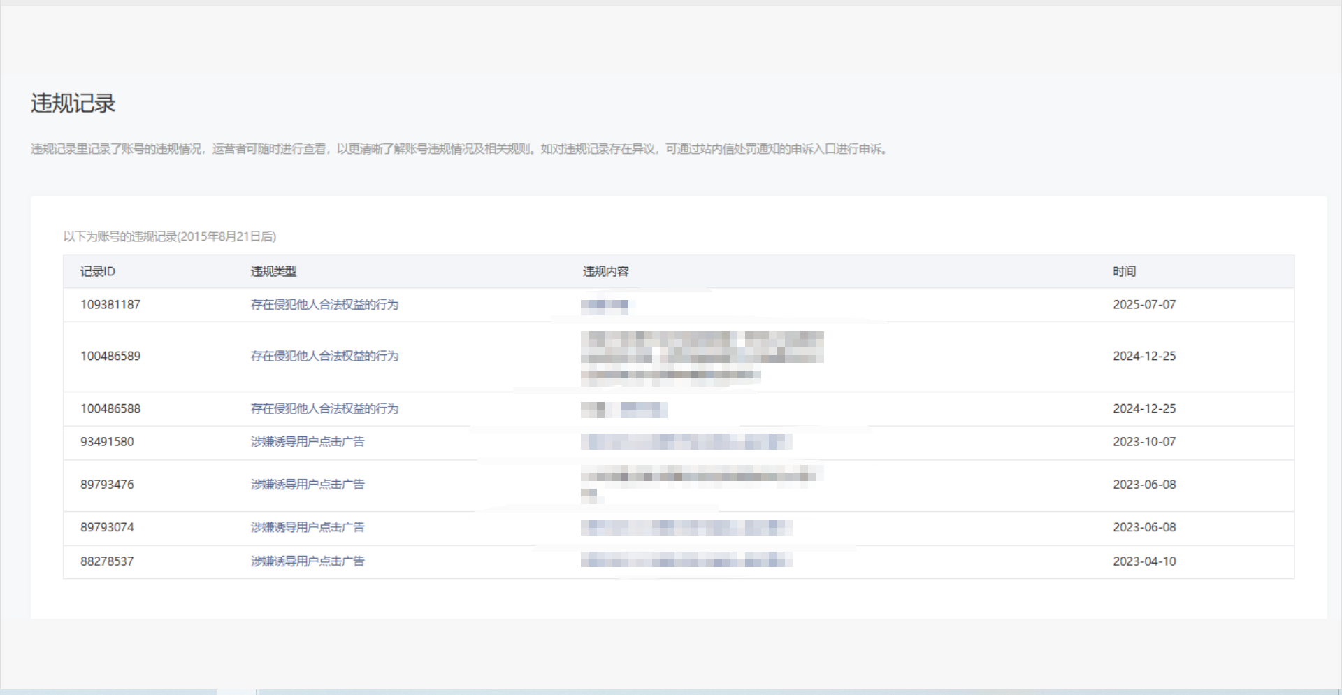 • 违规记录