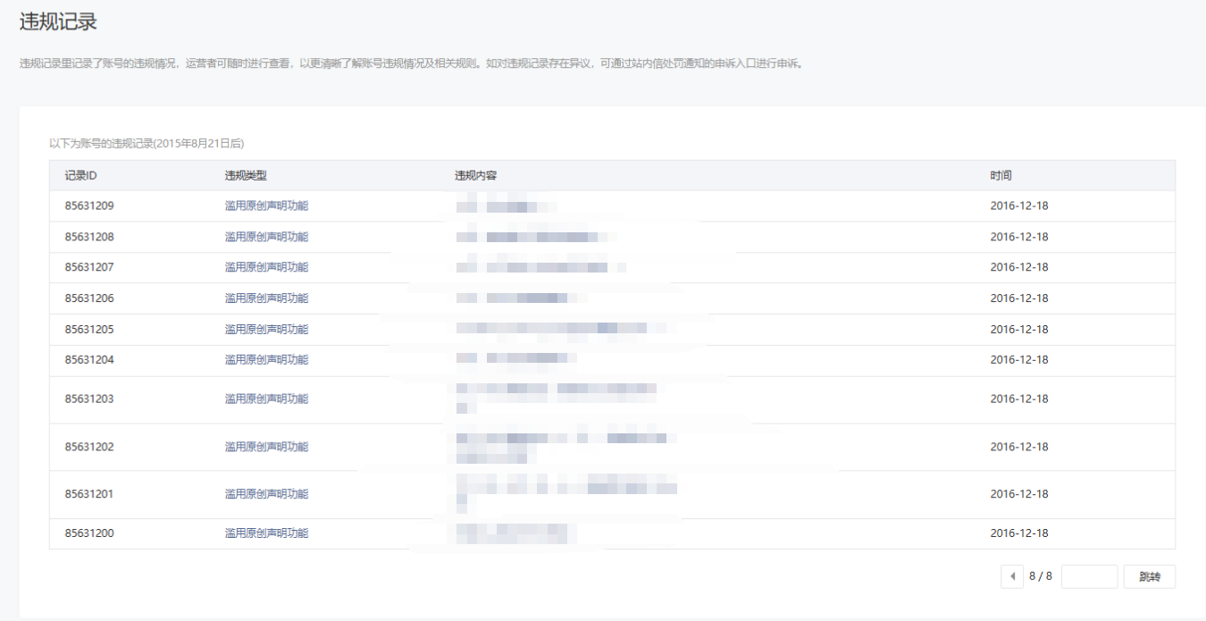 • 违规记录