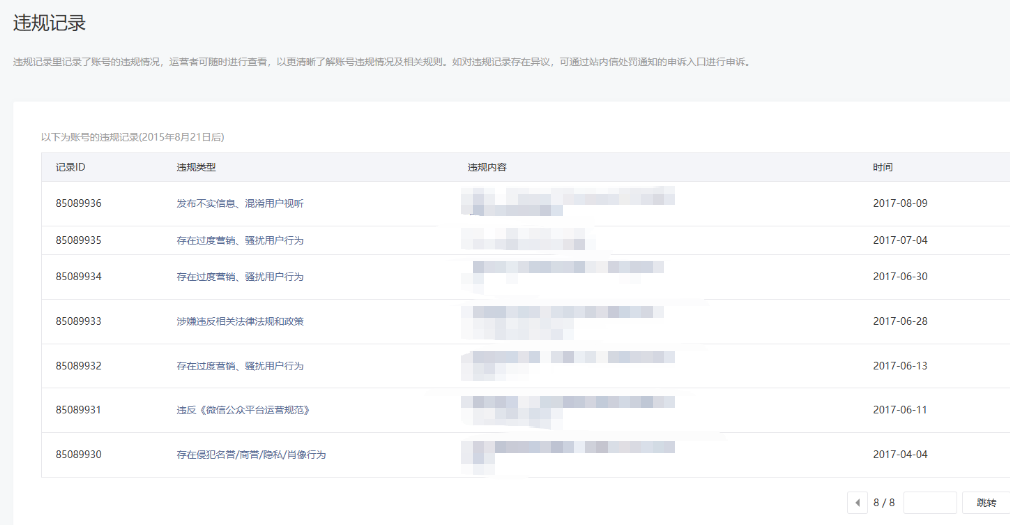 • 违规记录