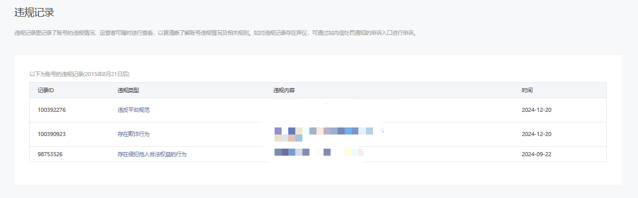 • 违规记录