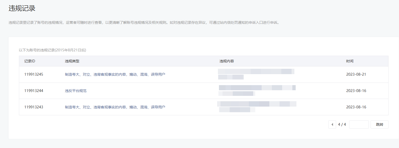 • 违规记录