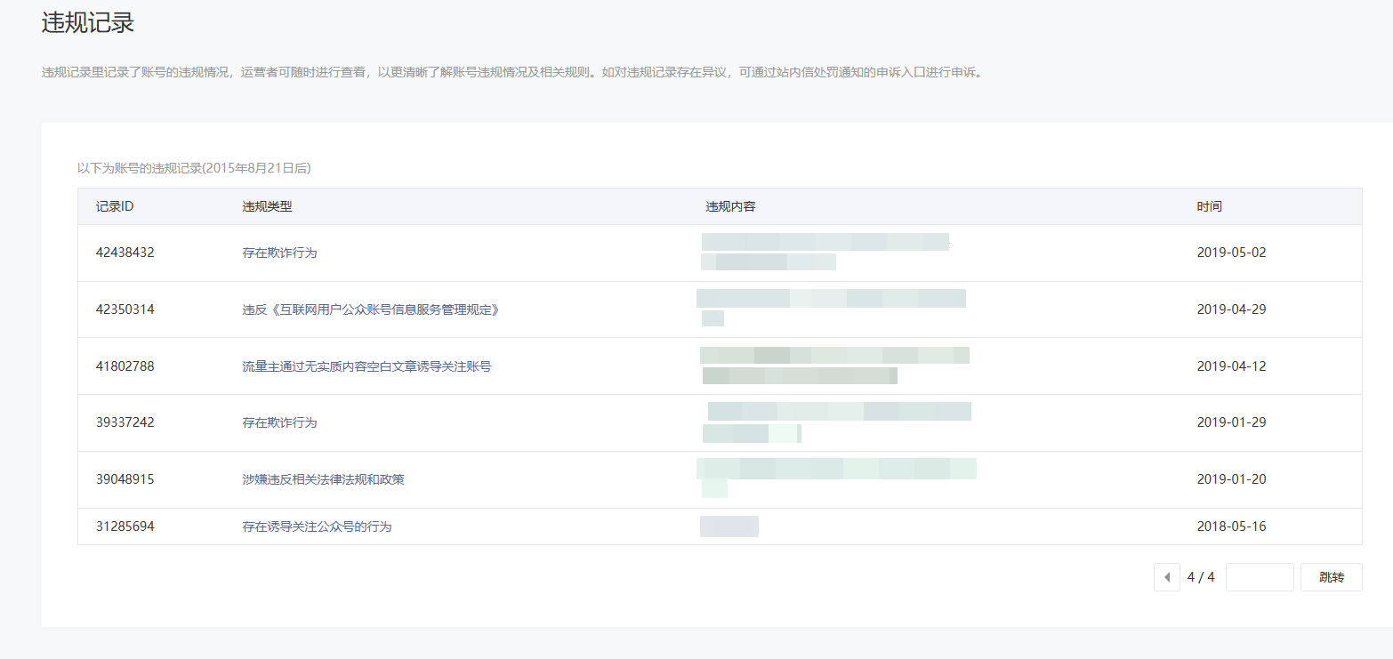 • 违规记录