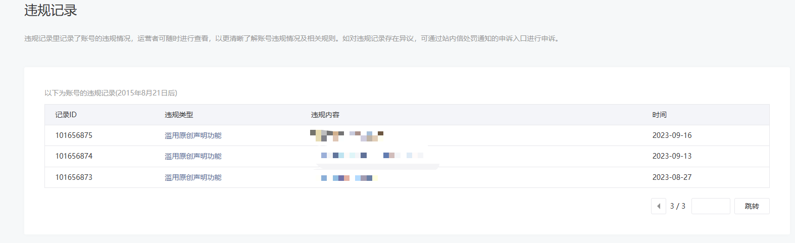 • 违规记录
