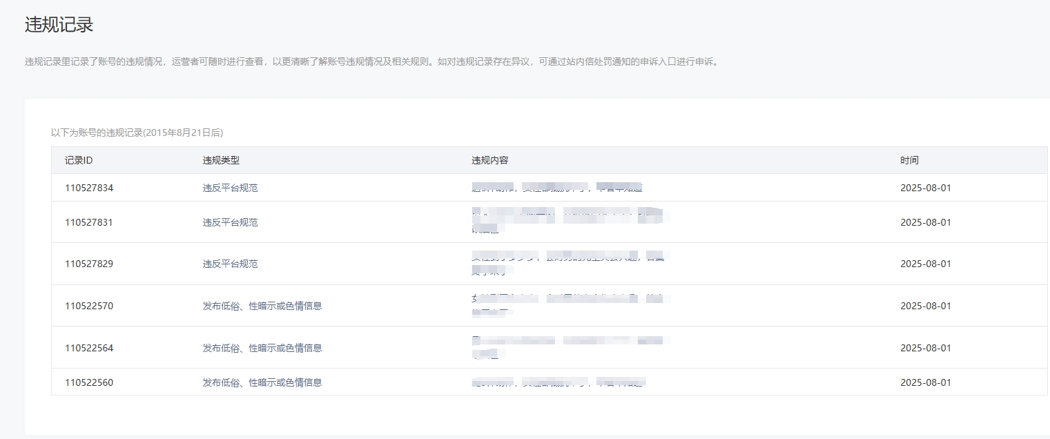 • 违规记录