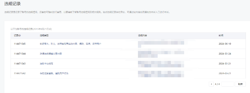 • 违规记录