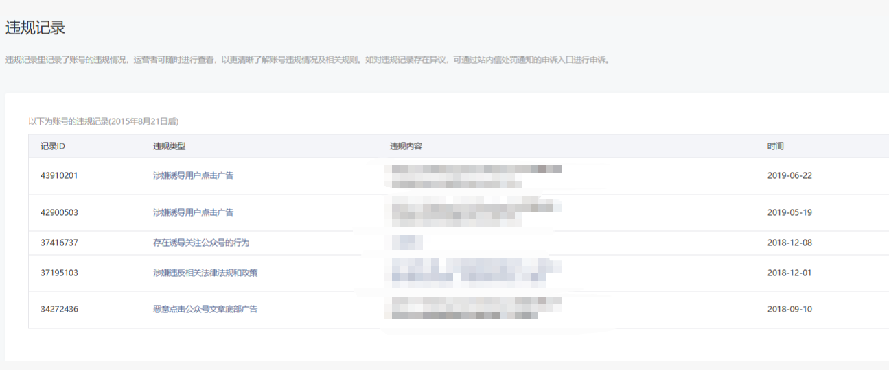 • 违规记录